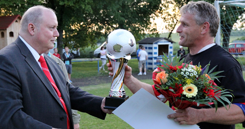 Der KFA Vorsitzende Jens Schenk übergab die silbere Kugel an den Mannschaftskapitän.