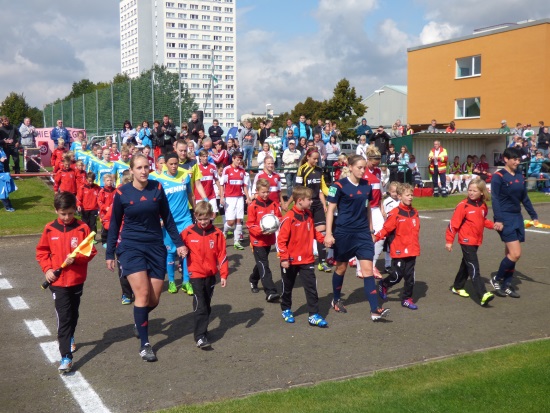 Ein besonderes Event hatten die Frauen des 1.FFV am vergangenem Wochenende in Ihrer Heimstätte dem Sportforum Johannesplatz. Als Vertreter unseres KFA gewannen sie den Landespokal Thüringens und konnten somit einmal mehr im DFB-Pokal starten. Hier bekam man den 1.FC Köln aus der 2.Bundesliga zugelost. Gut 300 Zuschauer fanden den Weg und sahen einen mehr als achtbaren Auftritt der Erfurterinnen. Sie forderten die Kölnerinnen und unterlagen am Ende nur 0:2.