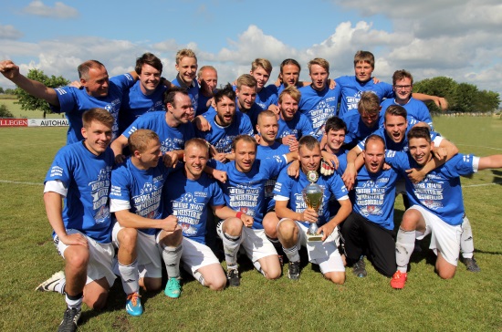 Auch am letzten Spieltag gewann der Tabellenführer der Kreisoberliga sein Punktspiel zu Hause und konnte nach der Partie den souveränen Aufstieg feiern. Die Mannschaft stand schon einige Zeit vor dem Saisonabschluss als Aufsteiger fest. Der Vorsitzende des KFA Erfurt-Sömmerda Jens Schenk nahm die Ehrung vor. er übergab den Pokal und zeichnete die gesamte Mannschaft aus.