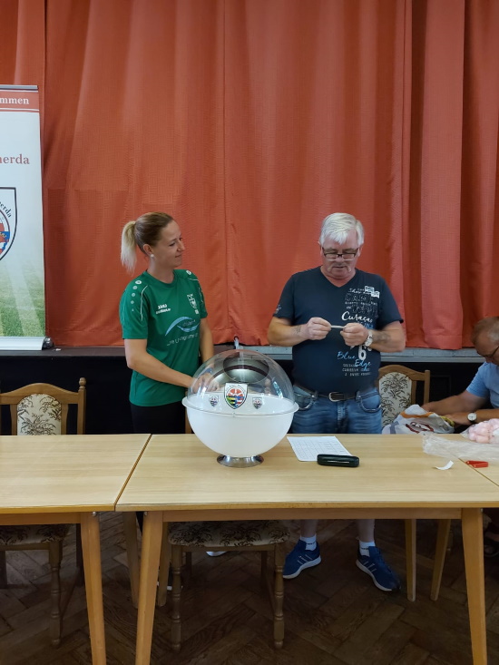 Unter Leitung des Vorsitzenden des Spielausschusses des KFA Erfurt-Sömmerda, Dieter Fuhr, wurde im Rahmen der Saisoneröffnung im Nachwuchsbereich die ersten Runden im neuen Kabine 38 Kreispokal ausgelost. Glücksfee spielte Anne Gold, welche u. a. gerade am Teamleiterlehrgang des KFA Erfurt-Sömmerda teilgenommen hat. Die Veröffentlichung erfolgt zeitnah auf FUSSBALL.DE.