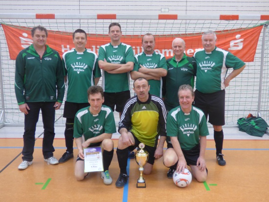 Während Lok Erfurt sieglos blieb, stritten Ollendorf, Empor Erfurt und Windischholzhausen in dieser Reihenfolge um den Titel. Alle drei hatten am Ende 5 Punkte und so mussten die Tore und sogar ein 9m-Schießen entscheiden. Während Empor das 9m-Schießen um Platz 2 siegreich gestaltete und Zweiter wurde, wurden die Ollendorfer Oldies auf Grund der meisten Treffer Meister des KFA und nehmen an der Vorrunde des TFV am 15.03.2015 in Mühlhausen teil. Eventuell wird auch der Zweitplatzierte nominiert. Hier steht eine Entscheidung durch den TFV noch aus.