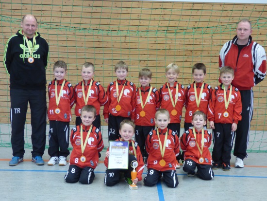 In der Halle des Sportgymnasiums fanden wieder durchweg spannende und faire Spiele statt. Während sich bei den kleinsten am Ende der ESV Lok Erfurt erwartungsgemäß durchsetzte und ungeschlagen Meister wurde, war es bei den zweitjüngsten schon ausgeglichener und lange offen. Meister wurde die Spielgemeinschaft FC Borntal vor dem eigentlichen Favoriten des FC RW Erfurt.