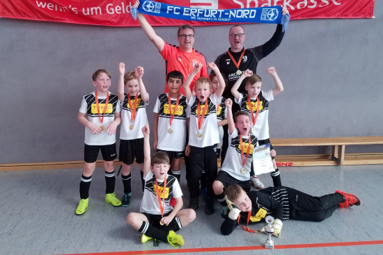 Die F-Junioren spielten am vergangenen Wochenende in Weißensee die Endrunde der Hallensaison nach Futsalregeln aus und ermittelten den Hallenkreismeister. Am Ende setzte sich die Mannschaft vom FC Erfurt Nord unbesiegt mit nur einem Unentschieden souverän durch.