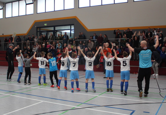 Anschließend lieferten sich fünf Vereine bis zum letzten Spiel bei den F-Junioren einen heißen Kampf. Besser konnte die Ansetzung nicht sein, denn vor dem Finalspiel standen Borntal und Vieselbach/Hochstedt punktgleich. Borntal mit zwei Toren besser konnte aber den Vorteil nicht nutzen. Trotz Führung unterlagen sie dem neuen Hallenmeister Vieselbach/Hochstedt mit 1:2 und ließen sich durch ihren lautstarken Anhang auch gebührend feiern.