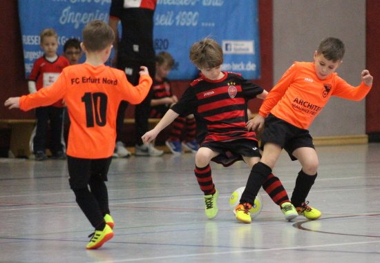 Mit dem letzten Titel der Saison in der Halle traten gleich sechs Mannschaften an. Doch der große Favorit scheiterte im letzten Spiel, der FC Rot-Weiß Erfurt. Mit einer Niederlage (0:1 gegen Kerspleben) trafen sie im letzten Spiel des Sonntags auf die bis dato ungeschlagenen Borntaler. Und diese machten ihre Aufgabe mehr als gut. Abwartend, immer wieder auf Konter lauernd, setzten sie zwei Nadelstiche zum 2:0.