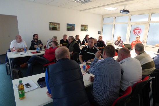 In Vorbereitung auf die bevorstehenden Aufgaben trafen sich die Staffelleiter des KFA Erfurt-Sömmerda in der Geschäftsstelle des TFV. Organisiert von Dieter Fuhr (Vorsitzender Spielausschuss) und unter Leitung von Sven Wenzel und Joachim Zeng wurden allen Teilnehmern nach einer kurzen Einführung in die Strukturen des TFV die Handhabung des DFBNet, speziell für den Kreisbereich näher gebracht. Für einige Kollegen baten die Ausführungen eine gekonnte Auffrischung des Wissens, da Sie schon langjährig mit dem System arbeiten. Die Staffelleiter der jüngeren Spielklassen im Nachwuchsbereich des Kreises (Kleinfeld) folgten den Ausführungen ganz genau, da für Sie ab der neuen Saison 2015/16 erstmalig der elektronische Spielbericht zur Anwendung kommt. Für alle Staffelleiter neu ist die Einbindung der Sportgerichtsbarkeit in mehrere Module des DFBNet. Damit können in Zukunft Verfahren noch schneller und effektiver abgewickelt werden. Abgerundet wurde die gelungene Veranstaltung mit einer Fragerunde der Teilnehmer an die Referenten.