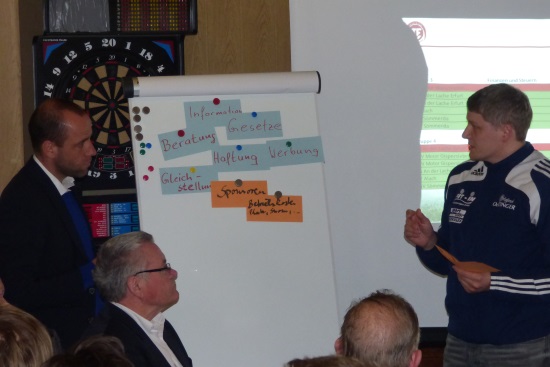 Im Anschluss präsentierte Stefan Schaper die Möglichkeiten der Vereinsberatung auf FUSSBALL.DE -> Training & Service -> Vereinsmitarbeiter/in am praktischen Beispiel. Ein wichtiger Punkt, welcher für viele Vereine unbekannt ist, ist die Nutzung von Schulungsangeboten des TFV zu konkreten Themen auch vor Ort im Verein. Hierzu gibt es eine Broschüre (Link, pdf), welche alle Möglichkeiten der Vereinsberatung aufzeigt und detailliert beschreibt. Hier sind die Vereine gefordert, ihre Defizite zu analysieren und die Schulungen des TFV zu nutzen um den Verein weiter voran zu bringen und rechtliche Probleme zu umschiffen.