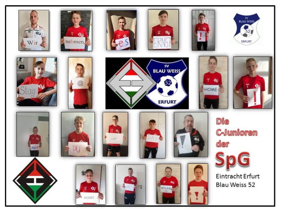 Durch die Initiative der Spielgemeinschaft Eintracht/BW 52 Erfurt, wollen wir mit dieser Aktion dazu aufrufen, zu Hause zu bleiben. Wir hoffen somit, dass sich auch die jungen Leute der Stadt Erfurt mit dieser Idee identifizieren.