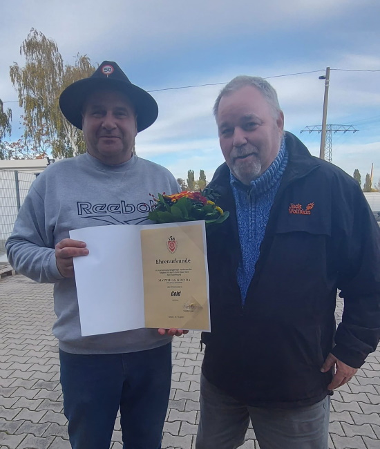 Anlässlich seines 50. Geburtstag überbrachten der Vorsitzende des KFA Erfurt-Sömmerda, Uwe Schiebold, sowie der Ehrenamtsbeauftragte des Kreises, Uwe Becker, dem Jubilar die herzlichsten Grüße und Glückwünsche des KFA und nutzten gleich die Gelegenheit Matthias Grinda die Ehrennadel des Stadtsportbundes Erfurt zu überreichen. Er ist ehrenamtlich im Verein TSV Motor Gispersleben und dem KFA Erfurt-Sömmerda schon seit vielen Jahren tätig. In den Jahren der Zugehörigkeit beim TSV Motor Gispersleben war er Trainer und Jugendleiter des Vereins. Ebenfalls tätig war er viele Jahre als Schiedsrichter im KFA. Aktuell ist er immer noch als Staffelleiter im Seniorenbereich verantwortlich.