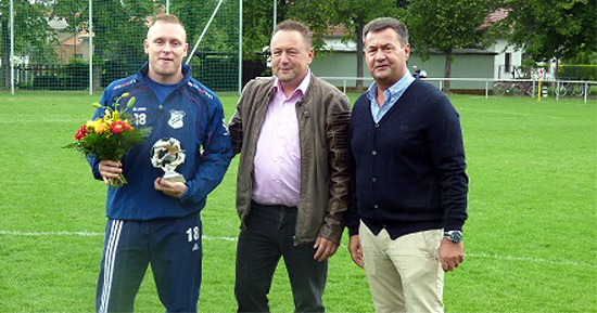 Trotz seiner Verletzung konnte sich Florian Maulhardt vorzeitig mit 41 Treffern die Torschützenkrone sichern. Beim letzten Spiel seines SV Empor Erfurt in Haßleben wurde ihm die Torschützen Trophäe von stellv. Vorsitzenden Roland Koch und Staffelleiter Peter Wedemann überreicht.