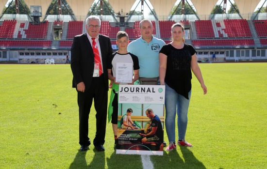 Eine kleine Entschädigung erhielt der aufgeweckte D - Junioren - Kicker dennoch. Peter Brenn überreichte ihm die Sepp-Herberger-Urkunde für sein Bemühen, um die Integration beeinträchtigter Sportler. Denn Simon Seyfarth ist ein Vorbild und Beispiel für alle, die ähnliches durchgemacht haben und mit ihrer Behinderung klar kommen müssen.