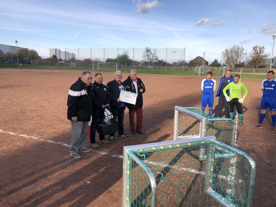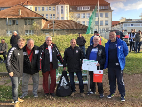 Corona ließ bislang eine Übergabe der Präsente, die ein Verein erhält, wenn aus seinen Reihen ein Mitglied in der "DFB-Club der 100" aufgenommen wird, nicht zu. Am Wochenende nutzte der Thüringer Fußball-Verband (TFV), um zwei Sportfreunde für ihr ehrenamtliches Engagement zu würdigen und jeweils ein Ballpaket und zwei Minitore dem Verein zu überreichen.