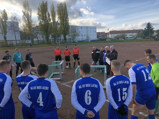 Am Samstag stand Dieter Fuhr im Mittelpunkt. Er gehört der SG An der Lache an. Vor dem Spiel der Landesklasse, Staffel 2, mit dem die Fußballer Dieter Fuhr noch eine Freude machten, denn sie gewannen als 13. gegen den Tabellenachten Empor Walschleben mit 2:0, erfolgten Auszeichnung und Übergabe.