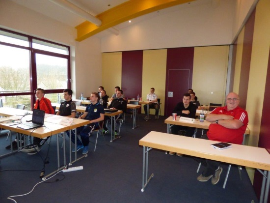 13:00 Uhr waren alle Schiedsrichter beim Konformitätstest gefordert. Hier wird mithilfe von Videosequenzen aus höherklassigen Spielen geprüft, ob die Schiedsrichter die Situationen richtig bewerten können. Anschließend daran mussten sich alle Schiedsrichter umziehen und sich auf den Lauftest vorbereiten. Es wurde der FIFA Test gelaufen. Dieser beinhaltet sechs 40-Meter Sprints, wobei man schneller als 6,5 Sekunden sein muss und einen weiteren Lauftest. Dabei müssen 150 Meter in 30 Sekunden zurückgelegt werden und 50 weitere Meter in 40 Sekunden. Dieser Vorgang wird 20 Mal wiederholt. Nach Erreichen des Ziels waren die Erfurter Schiris sehr zufrieden. Nur knapp die Hälfte hat den FIFA Test geschafft. Nach einer Regeneration mussten sich die Unparteiischen einem zweiten Regeltest stellen, welcher perfekt ausfiel. Im Anschluss eines Vortrages von Jürgen Muscat haben sich alle zusammen versammelt und sich das Abendspiel RB Leipzig gegen FC Schalke 04 angeschaut.