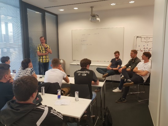 Am Samstag dem 21.04.2018 fand der Lehrgang des Förderkaders in Leipzig statt. Treffpunkt war 09:00 Uhr am Hauptbahnhof Erfurt. Von dort aus fuhr die Gruppe nach Leipzig. Um 11:00 Uhr spielten die A-Junioren von RB Leipzig gegen den Chemnitzer FC. Es traf der 5. der A-Junioren Bundesliga auf den Letzten. Alle Teilnehmer bekamen eine spezielle Aufgabe, die sich auf die Spielleitung des Schiedsrichters bezog. Nach dem Schlusspfiff folgte ein Auswertungsgespräch mit dem Schiedsrichter-Beobachter Helmut Bley. Anschließend stieß auch das Hamburger Schiedsrichter-Gespann um Florian Pötter zu uns. Gemeinsam wertete die Nachwuchsgruppe die Leistung des Schiedsrichtergespanns aus und stellte dem Regionalliga-Beobachter viele Fragen. Nach der Auswertung gingen die Teilnehmer des Lehrgangs in die Red Bull Arena zum Bundesligaspiel RB Leipzig – TSG 1899 Hoffenheim. Die Gruppe durfte ein sehr interessantes Spiel erleben, welches RB Leipzig mit 2:5 verlor. Verschiedene Szenen beider Spiele wurden auf dem Weg ins Restaurant "Hans im Glück" noch einmal diskutiert. Im Restaurant angekommen ließen wir gemeinsam einen schönen Tag ausklingen. An dieser Stelle nochmals vielen Dank an Lars Albert für die Organisation der Räumlichkeiten und den Kontakt zum Schiedsrichter-Beobachter.