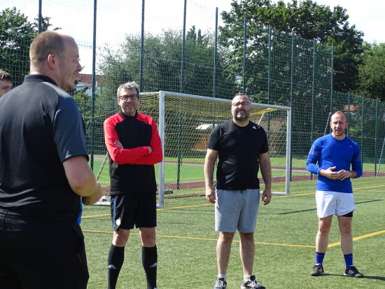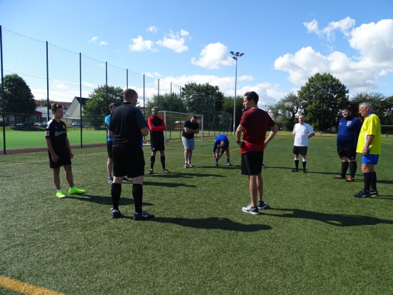 Dazu holte man sich mit Patrick Krumbholz einen erfahrenen Trainer an die Seite, der ebenfalls seit gut 20 Jahren als Schiedsrichter aktiv ist und derzeit die erste Männermannschaft des FSV Kölleda trainiert. Bereits die erste Trainingseinheit kam dabei bei allen Teilnehmern gut an, wobei zwischen 13 und Ü60 auch alterstechnisch alles vertreten war. Nach ein bisschen Warmlaufen folgten einige Dehnübungen, die auch vor Spielen praktiziert werden können. Anschließend folgten einige Laufübungen, die teilweise auch die Koordination der Teilnehmer forderten. Natürlich durften auch Intervall-Übungen nicht fehlen, wobei hier verstärkt auf Antritte und Richtungswechsel geachtet wurde und dabei auch geistige Fitness trainiert wurde.